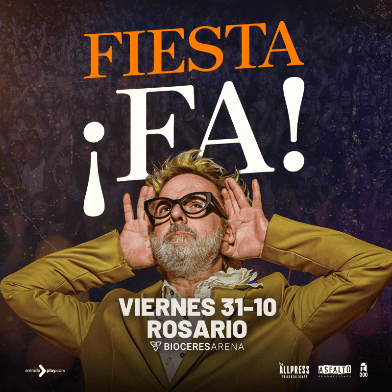 El viernes 31 de octubre a las 20:30 hs, la Bioceres Arena (Av. Córdoba 3475, Rosario) abre puertas desde las 19:00 para recibir la fiesta “¡FA!”, un evento apto para mayores de 12 años acompañados por un adulto.