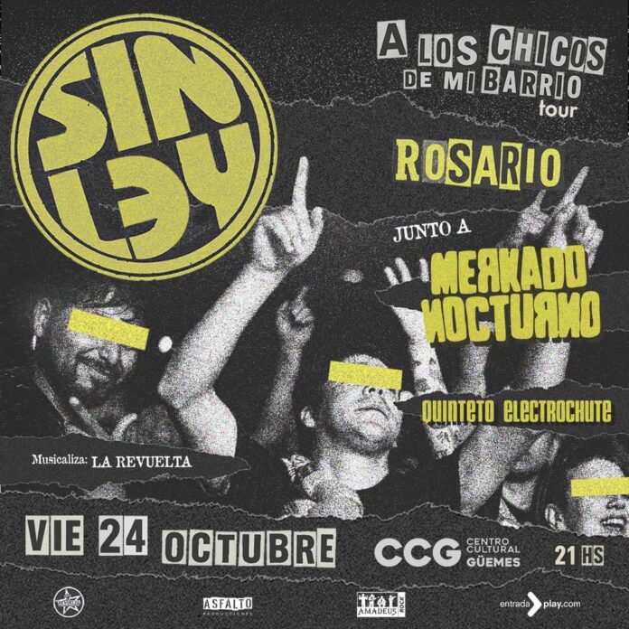 La esperada noche del 24 de octubre de 2025 trae a la ciudad de Rosario al colectivo barrial-musical Sin Ley, que llegará al escenario del Centro Cultural Güemes (Güemes 2808) con apertura de puertas a las 20:00 h para una experiencia sin precedentes para mayores de 18 años.